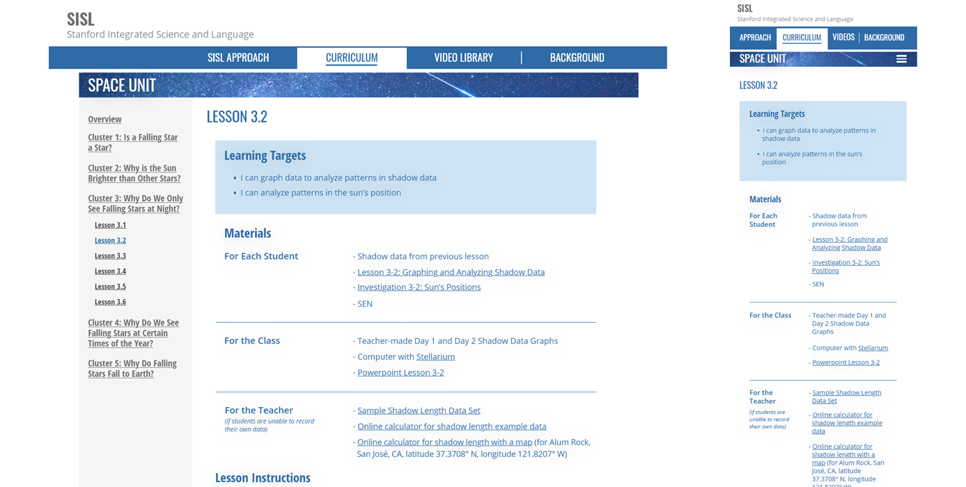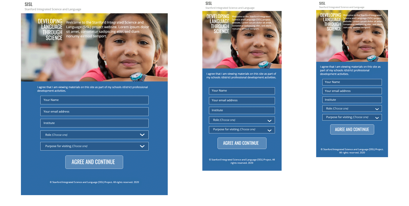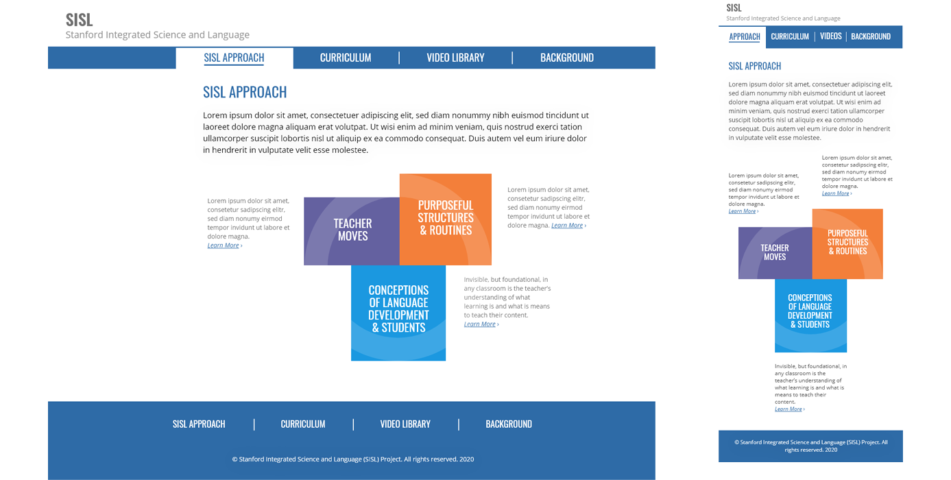 The Integrated Science and Language department of Stanford University needed a website where they could share their curriculum for integrating English learning through science. One of the biggest challenges of this process was allowing the site's responsive design a means to accommodate the varied curriculum content, in all its forms. I worked closely with the client and instructional designer to ensure we met those goals, designing the user interface with flexible content layouts. Tools included Adobe Xd, Photoshop and Illustrator.